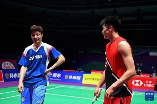 4月26日,石宇奇(左)與李詩灃在訓(xùn)練中交流。新華社記者 侯昭康 攝