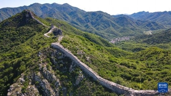 石峽關(guān)長城和長城腳下的石峽村(6月1日攝,無人機(jī)照片)。