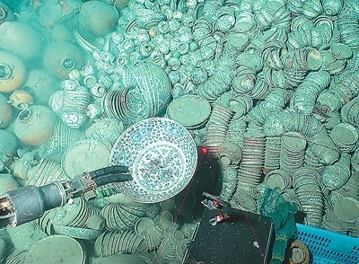關(guān)強表示,南海西北陸坡一號、二號沉船保存相對完好,文物數(shù)量巨大,年代比較明確,是我國古代海上絲綢之路貿(mào)易往來與文化交流的重要見證,最重要的是實證了中國先民開發(fā)利用往來南海的歷史事實,對中國海洋史、陶瓷史、海外貿(mào)易史,乃至絲綢之路研究都具有貢獻。