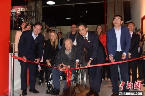 當(dāng)?shù)貢r(shí)間8月12日,巴西圣保羅州坎皮納斯市,“中國藝術(shù)五千年 塞奎拉·萊特收藏”啟幕。圖為收藏家塞奎拉·萊特(前左二)在開幕式上剪彩。中新社記者 林春茵 攝