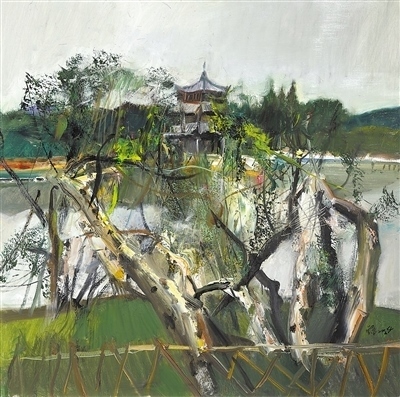 一系列實(shí)踐折射出新時(shí)代油畫的特點(diǎn):既蘊(yùn)含現(xiàn)實(shí)主義理念和表現(xiàn)的深度,又富有東方浪漫主義的詩性。比如,在“第四屆青山行不盡——唐詩之路藝術(shù)展:長風(fēng)幾萬里”“山海神游——詩路浙江山水繪畫臺(tái)州主題展”等展覽上,一些充滿山海情懷、草木生機(jī)、時(shí)尚意趣的作品,正體現(xiàn)了創(chuàng)作者根植時(shí)代生活的藝術(shù)創(chuàng)造,以及圓融飽滿、充滿東方意蘊(yùn)的表達(dá)。“江山留勝跡,我輩復(fù)登臨”。對(duì)于畫家而言,每一次登臨祖國的名山大川,都仿佛是應(yīng)和歷史的邀約。我們重識(shí)祖國的山水,接受山水的浸潤,直面山水的歷史,把握山水的立意,實(shí)現(xiàn)山水的寫意。這種腳踏大地、丈量古今的行走,成為詩意汩汩不絕的生長方式——不管承載這詩意的是煥彩文章、是筆墨油彩、是影像裝置,還是園林雕塑或者其他。