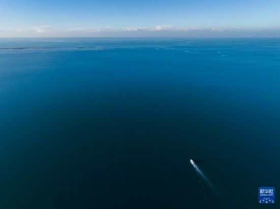 10月18日,一艘游輪行駛在青海湖二郎劍景區(qū)(無(wú)人機(jī)照片)。