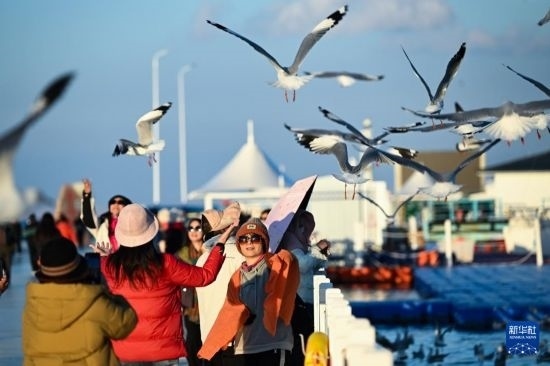 10月18日,游客在青海湖二郎劍景區(qū)游玩。