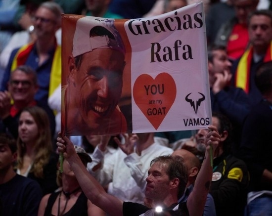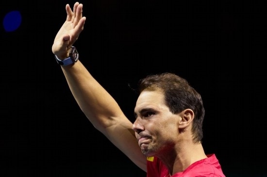 看著年輕時的自己帶著一臉青澀捧起一座座冠軍獎杯的影像出現(xiàn)在球場大屏幕上,站在馬拉加體育宮球場中心的納達爾眼里泛起了淚光——這一刻,他即將與自己輝煌的職業(yè)生涯告別。