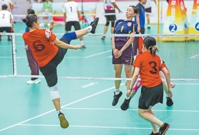 “好球!”“漂亮!”11月24日,海南三亞,第十二屆全國(guó)少數(shù)民族傳統(tǒng)體育運(yùn)動(dòng)會(huì)毽球項(xiàng)目比賽正酣。頭球、倒鉤球……激烈的回合、精彩的比拼,引來觀眾連連叫好。