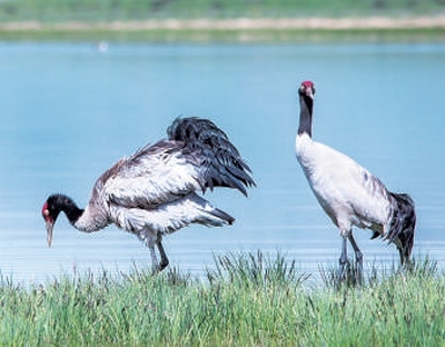 若爾蓋濕地的黑頸鶴。