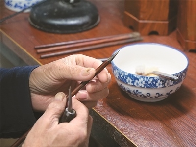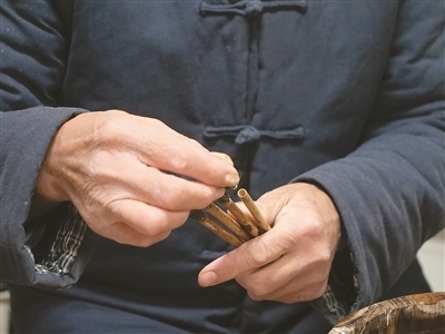 “無(wú)論是制作哪一類品種的宣筆,要能實(shí)現(xiàn)‘尖、齊、圓、健’均屬不易,需經(jīng)歷選料、水盆、制桿、裝套等多道工序、100多個(gè)環(huán)節(jié)。”以制桿為例,佘征軍介紹,工人需要先將筆桿磨平,再用工具在筆桿上挖出裝筆頭的洞,這套工藝沒(méi)有特定的參數(shù)可參考,全憑工人的手上感覺(jué)?!皩W(xué)徒入行,一般3到5年才能完整學(xué)會(huì)宣筆制造流程;要想做出一支優(yōu)秀的宣筆,至少10到12年的學(xué)習(xí)實(shí)踐;而要想學(xué)‘精’,需要一輩子的時(shí)間?!辟苷鬈娬f(shuō)。