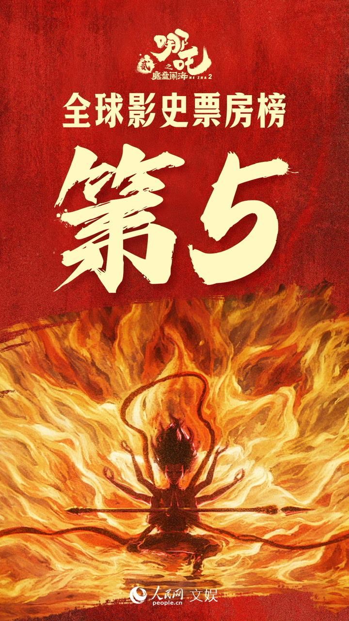 自上映以來,《哪吒之魔童鬧海》已連續(xù)創(chuàng)造多項(xiàng)紀(jì)錄,先后超越《獅子王》《侏羅紀(jì)世界》《頭腦特工隊(duì)2》《蜘蛛俠:英雄無歸》《復(fù)仇者聯(lián)盟3 :無限戰(zhàn)爭(zhēng)》票房成績(jī),在全球影史票房榜上的排名不斷躍升。