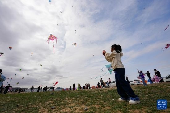 4月19日,人們在新疆烏魯木齊市水磨溝區(qū)風(fēng)箏嘉年華活動現(xiàn)場放風(fēng)箏。