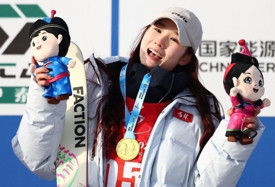 劉夢(mèng)婷的雪板上有一個(gè)“谷”字,她解釋說(shuō)這是谷愛(ài)凌同款定制雪板?!拔液芟矚g她的風(fēng)格,把她作為我的榜樣,激勵(lì)我進(jìn)步?!?/p>