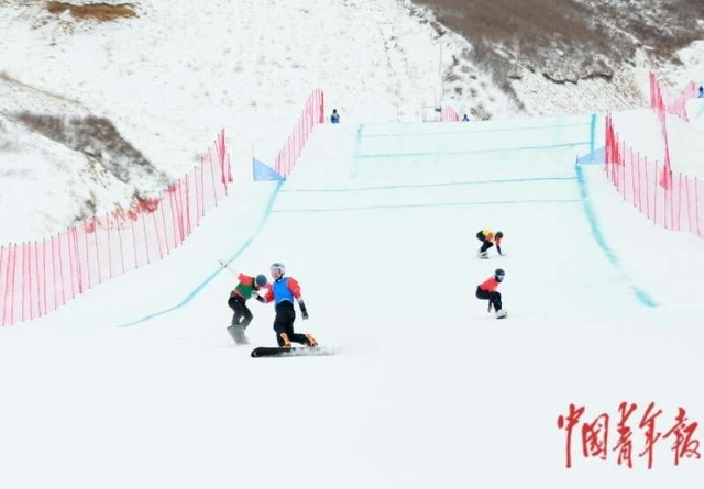 2月20日,單板滑雪公開組障礙追逐混合團(tuán)體賽中,貴州隊(duì)王會(huì)楊率先沖過終點(diǎn)。中青報(bào)·中青網(wǎng)記者 石佳/攝