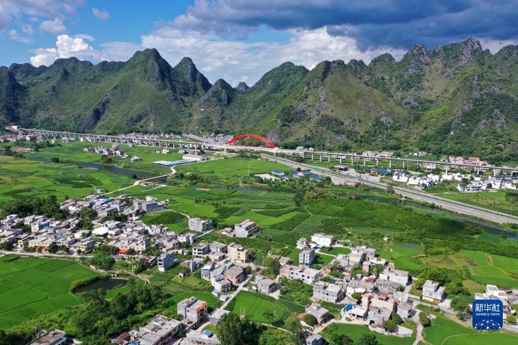 這是廣西都安瑤族自治縣高嶺鎮(zhèn)境內(nèi)的鄉(xiāng)村風(fēng)貌(2021年8月31日攝,無人機(jī)照片)。近年來,廣西壯族自治區(qū)生態(tài)文明建設(shè)成果喜人,八桂大地一年四季生機(jī)盎然,山川處處景象宜人。新華社記者 陸波岸 攝