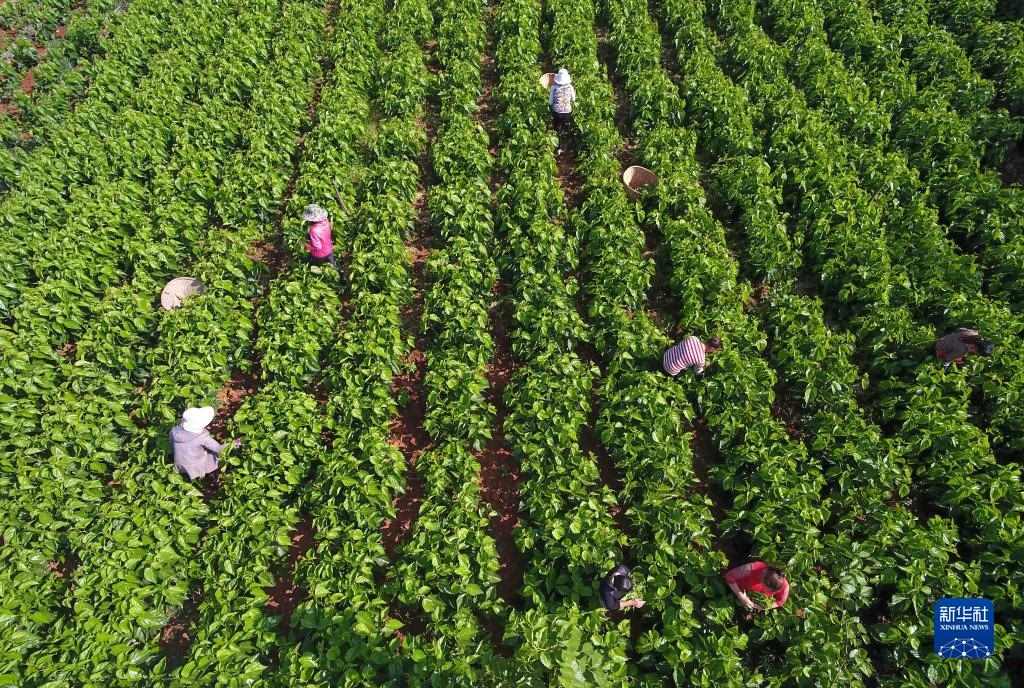 云南尋甸縣金所街道草海子村的農(nóng)婦在采摘蠶桑葉(2020年5月16日攝,無人機(jī)照片)。當(dāng)?shù)卮罅Πl(fā)展蠶桑等特色種養(yǎng)殖和加工產(chǎn)業(yè),帶動農(nóng)民脫貧增收致富。新華社記者 楊宗友 攝