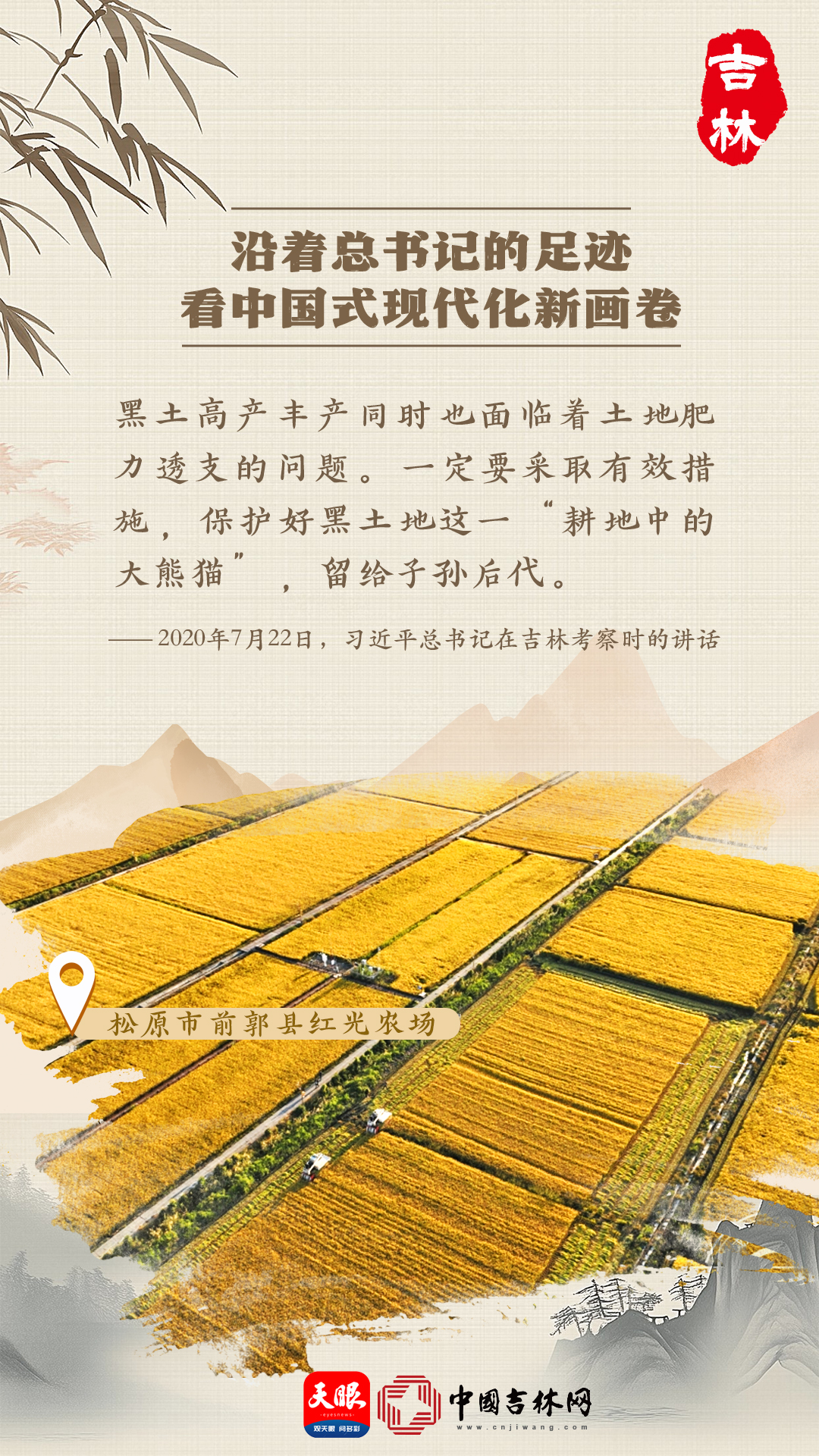 2020年7月,習(xí)近平總書(shū)記來(lái)到吉林梨樹(shù)視察,語(yǔ)重心長(zhǎng)地強(qiáng)調(diào),要保護(hù)好黑土地這一“耕地中的大熊貓”。牢記總書(shū)記的囑托,吉林成立黑土地保護(hù)領(lǐng)導(dǎo)小組和管理機(jī)構(gòu);出臺(tái)全國(guó)首部黑土地保護(hù)地方性法規(guī);實(shí)施“黑土糧倉(cāng)”科技會(huì)戰(zhàn);首創(chuàng)測(cè)土配方施肥手機(jī)信息服務(wù)系統(tǒng);建立黑土地保護(hù)與利用院士工作站……這一套行之有效的黑土地保護(hù)“吉林方案”為黑土地保護(hù)構(gòu)筑起堅(jiān)實(shí)的制度與科技支撐。如今,吉林正在構(gòu)建“院士工作站+科技聯(lián)盟+科技小院+推廣站+示范戶”五位一體“梨樹(shù)模式”,實(shí)施保護(hù)性耕作面積達(dá)到3800萬(wàn)畝,穩(wěn)居全國(guó)首位。