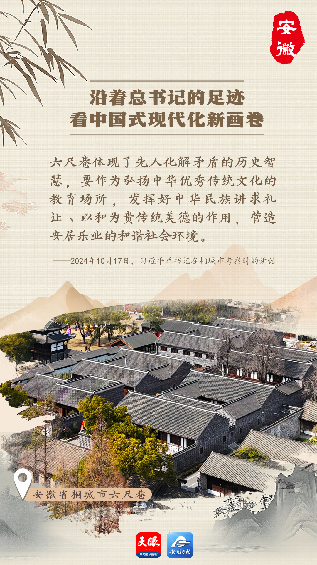 在桐城市六尺巷景區(qū),歷史與現(xiàn)代交織成一幅獨(dú)特畫(huà)卷。這里傳承三百多年的“禮讓文化”生生不息,文物在數(shù)字技術(shù)助力下“鮮活”起來(lái)。2024年10月17日,習(xí)近平總書(shū)記親臨桐城市考察并作出重要講話,為當(dāng)?shù)匕l(fā)展注入強(qiáng)大動(dòng)力。