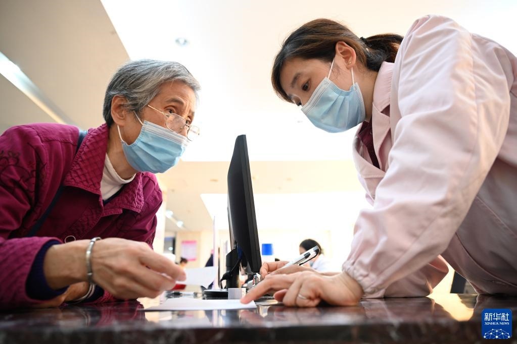 福建省三明市第一醫(yī)院醫(yī)保辦工作人員(右)向前來(lái)咨詢(xún)藥品報(bào)銷(xiāo)問(wèn)題的居民講解相關(guān)政策(2020年11月18日攝)。新華社記者 姜克紅 攝