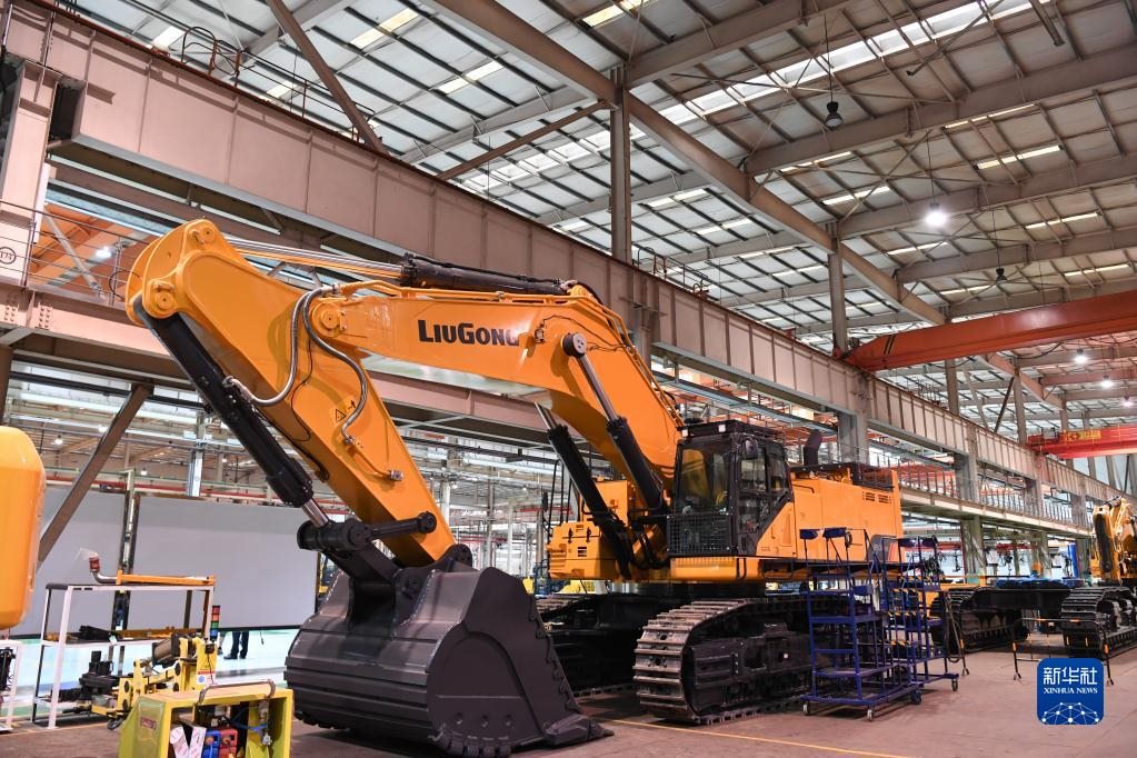 這是廣西柳工集團有限公司生產廠房內正在組裝的機械(2021年4月26日攝)。新華社記者 曹祎銘 攝
