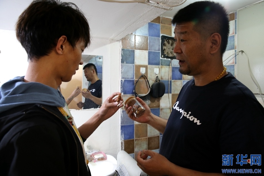 慕名而來的微雕愛好者與楊磊交流。新華網(wǎng) 楊騰格爾攝 -