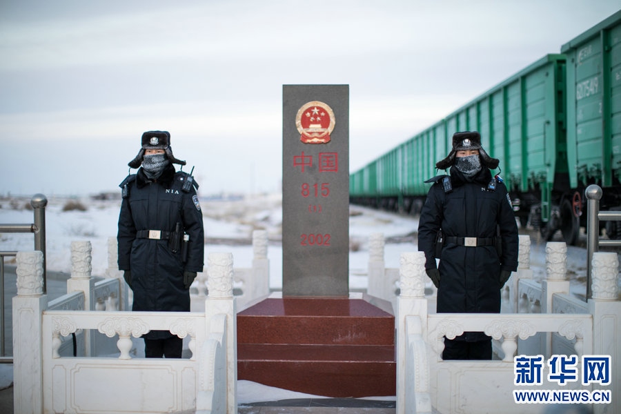12月28日,二連出入境邊防檢查站民警在國門一線執(zhí)勤巡邏。新華網(wǎng)發(fā)(郭鵬杰 攝) -