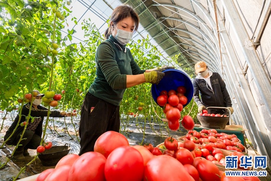11月17日,農(nóng)民在呼和浩特市玉泉區(qū)現(xiàn)代農(nóng)業(yè)示范園采收西紅柿。新華網(wǎng)發(fā)(丁根厚攝)