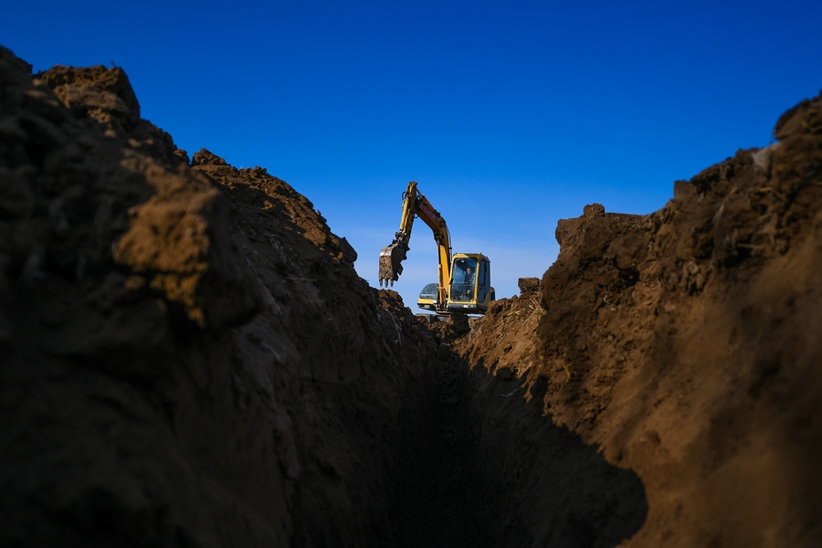 連日來,隨著天氣轉(zhuǎn)暖,呼和浩特市土默特左旗各鄉(xiāng)鎮(zhèn)、各部門迅速掀起春耕備耕熱潮,紛紛搶抓農(nóng)時,全力投入春耕備耕生產(chǎn)中,為農(nóng)業(yè)增效、農(nóng)民增收打下了堅實(shí)的基礎(chǔ)。圖為高標(biāo)準(zhǔn)農(nóng)田建設(shè)施工現(xiàn)場。(攝影:楊鑫) -